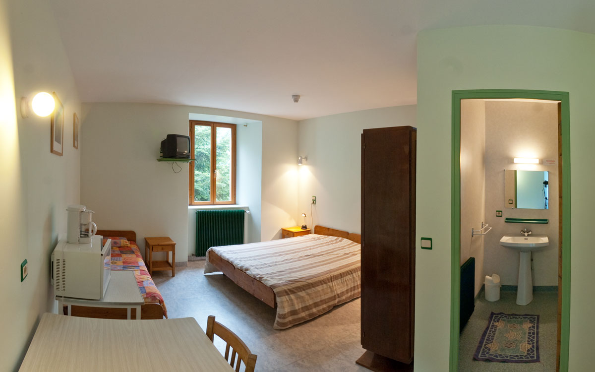 Présentation du studio Bastanet au premier étage - un grand lit 160/200 - un lit 8O/200 - salle d'eau - petite cuisine